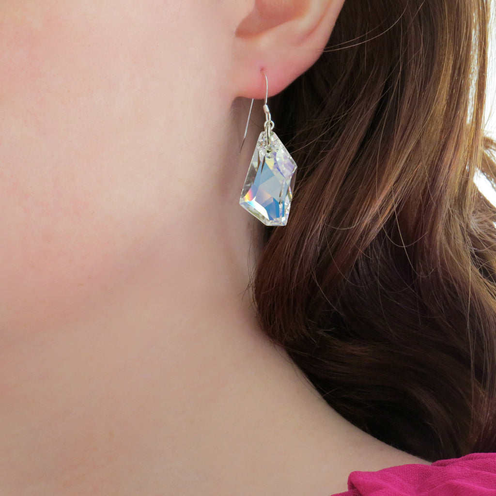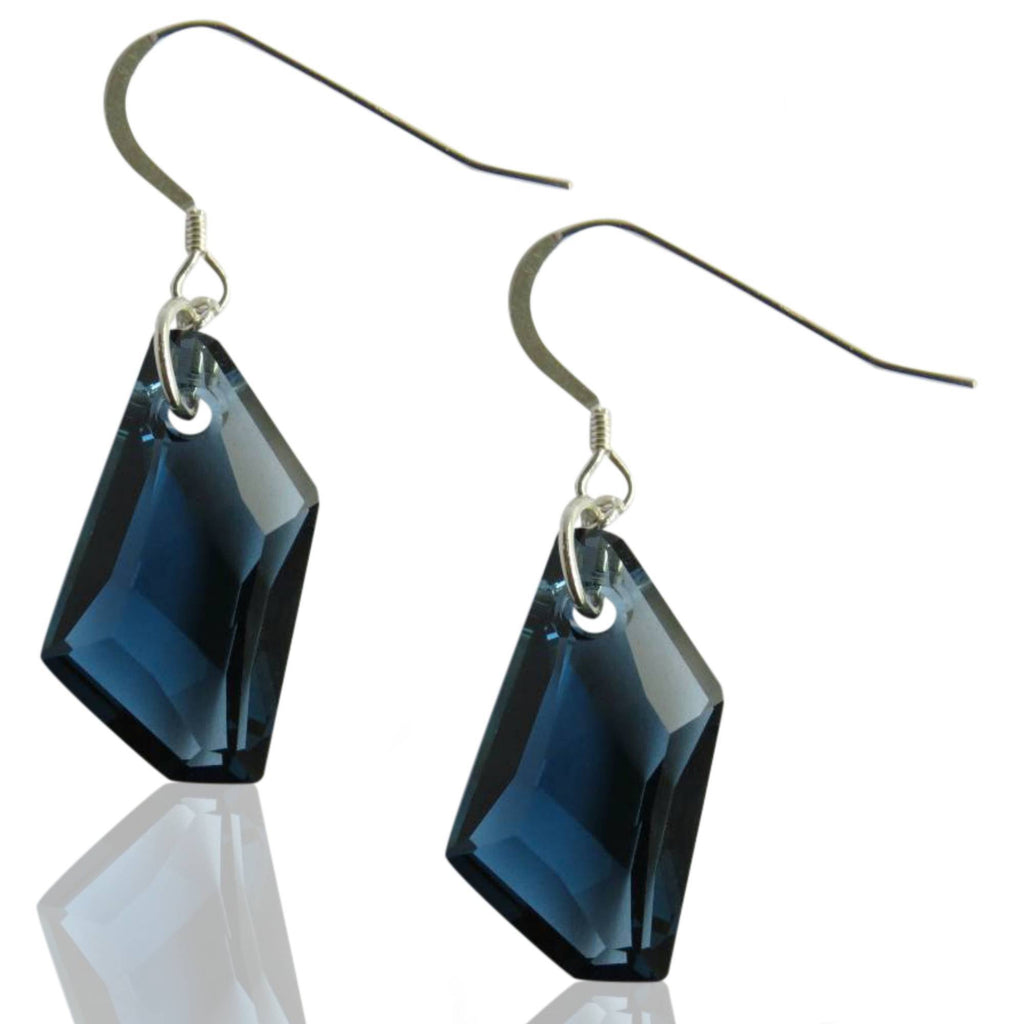 Why not add a touch of sparkle to any night out with these perfect additions. Wear them on there own as a statement, or accessorise them with the Natasha bracelet in silver. These made to order earrings are created using striking, 24mm, blue Swarovski crystals, which are attached to stirling silver, flat fish hook earrings.