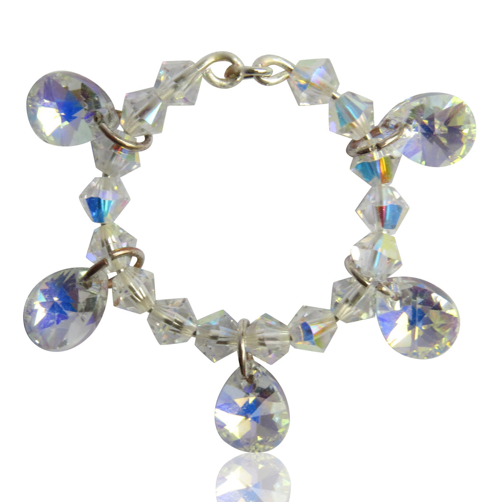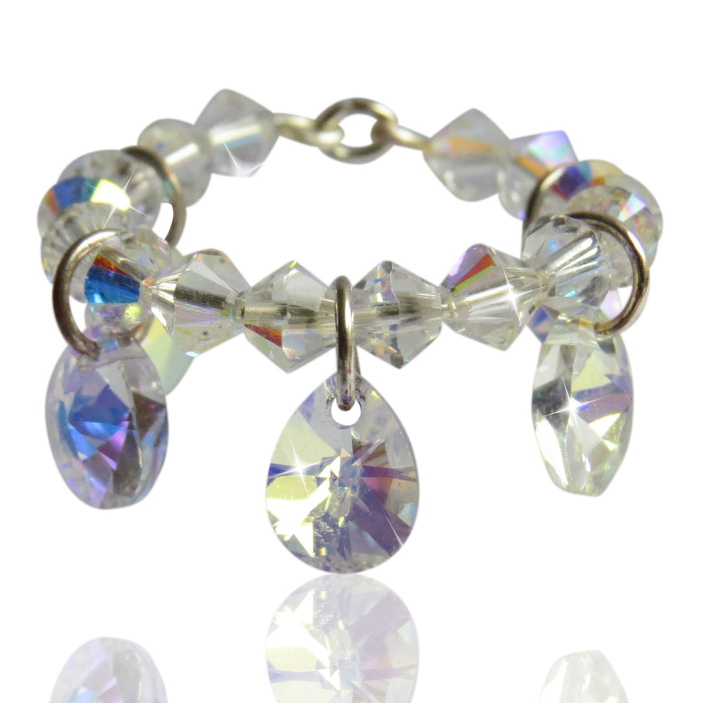 This made to order ring has been lovingly handmade, and is created using 4mm, silver Swarovski crystal beads, wrapped on sterling silver wire, with 8mm, silver, Swarovski pear, crystal pendants dangling between the crystals.