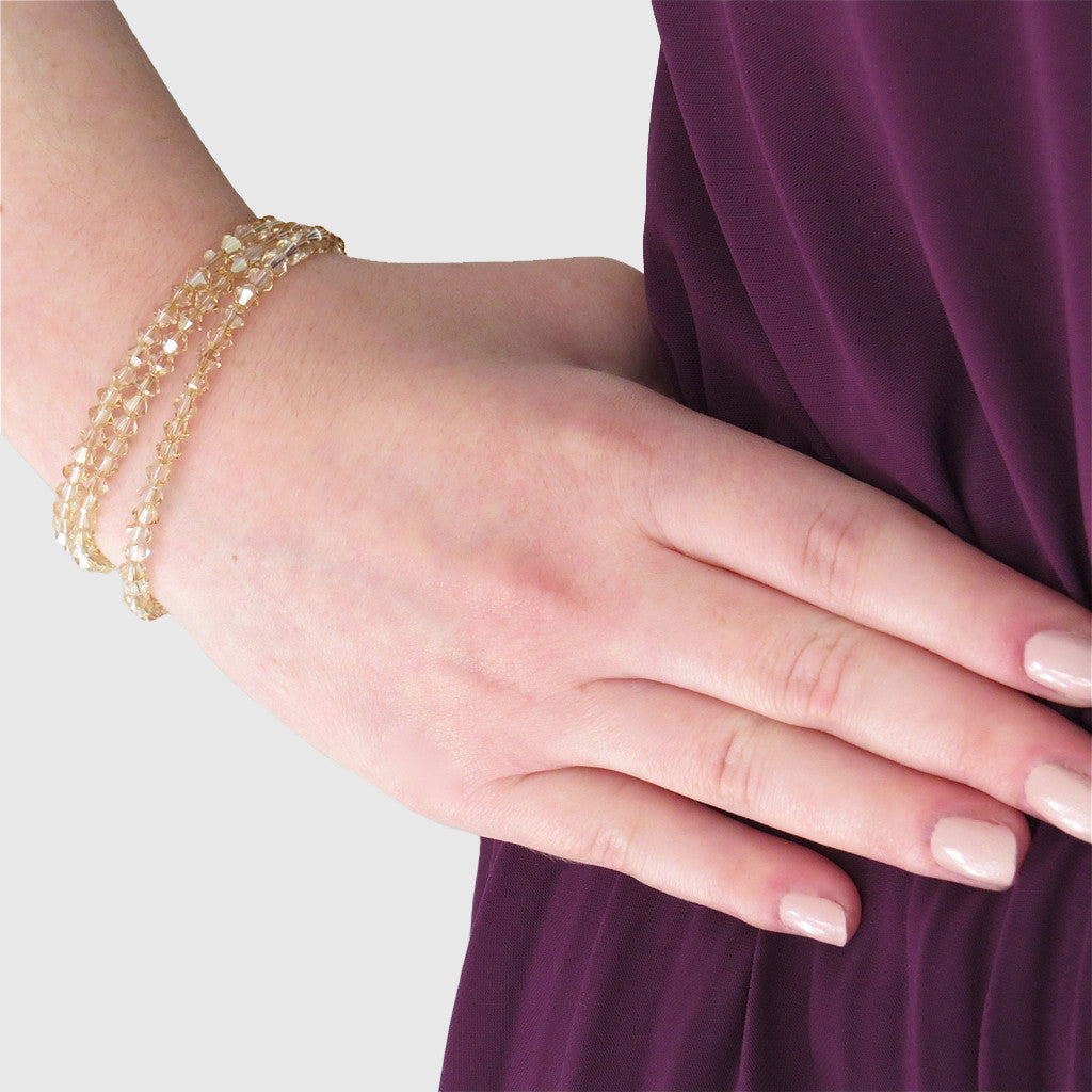 Natasha Bracelets aren't only beautiful to look at, they are versatile as well; they can be worn as either a 20" necklace or a wrap around bracelet. Pretty swanky, and a great space saver for packing!