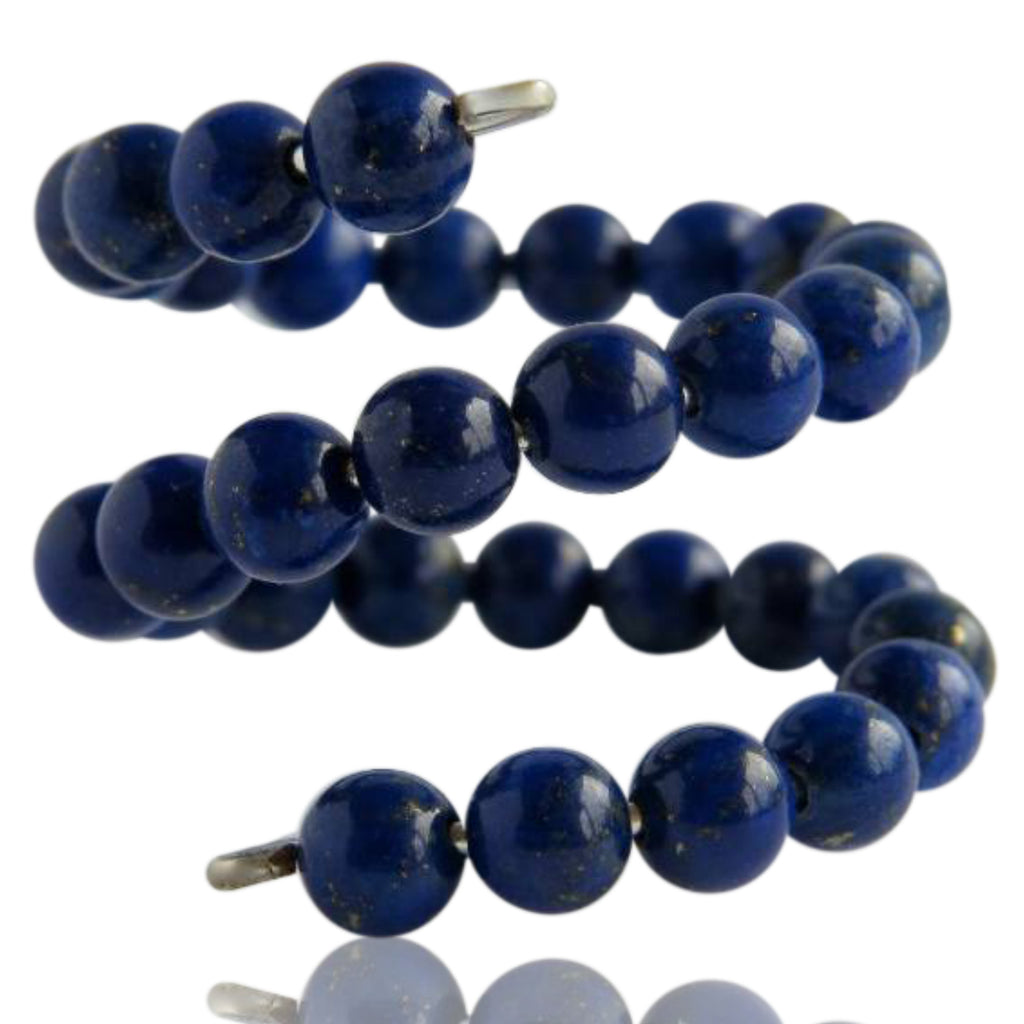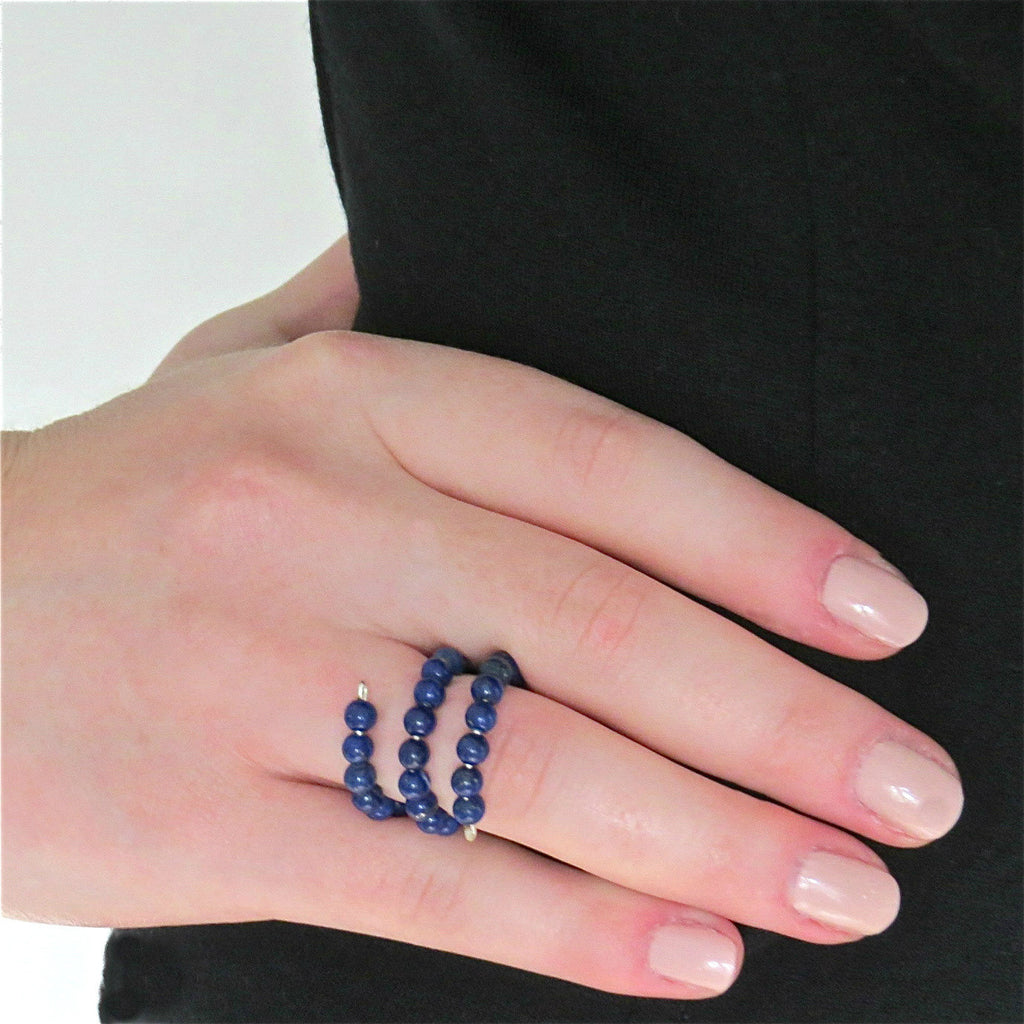 Go edgy with this made to order ring, which has been lovingly handmade, and is created using 4mm, blue lapis lazuli gemstones, which are wrapped on sterling silver wire. Additionally this ring has a slight give, so can be easily manipulated for comfort and size.